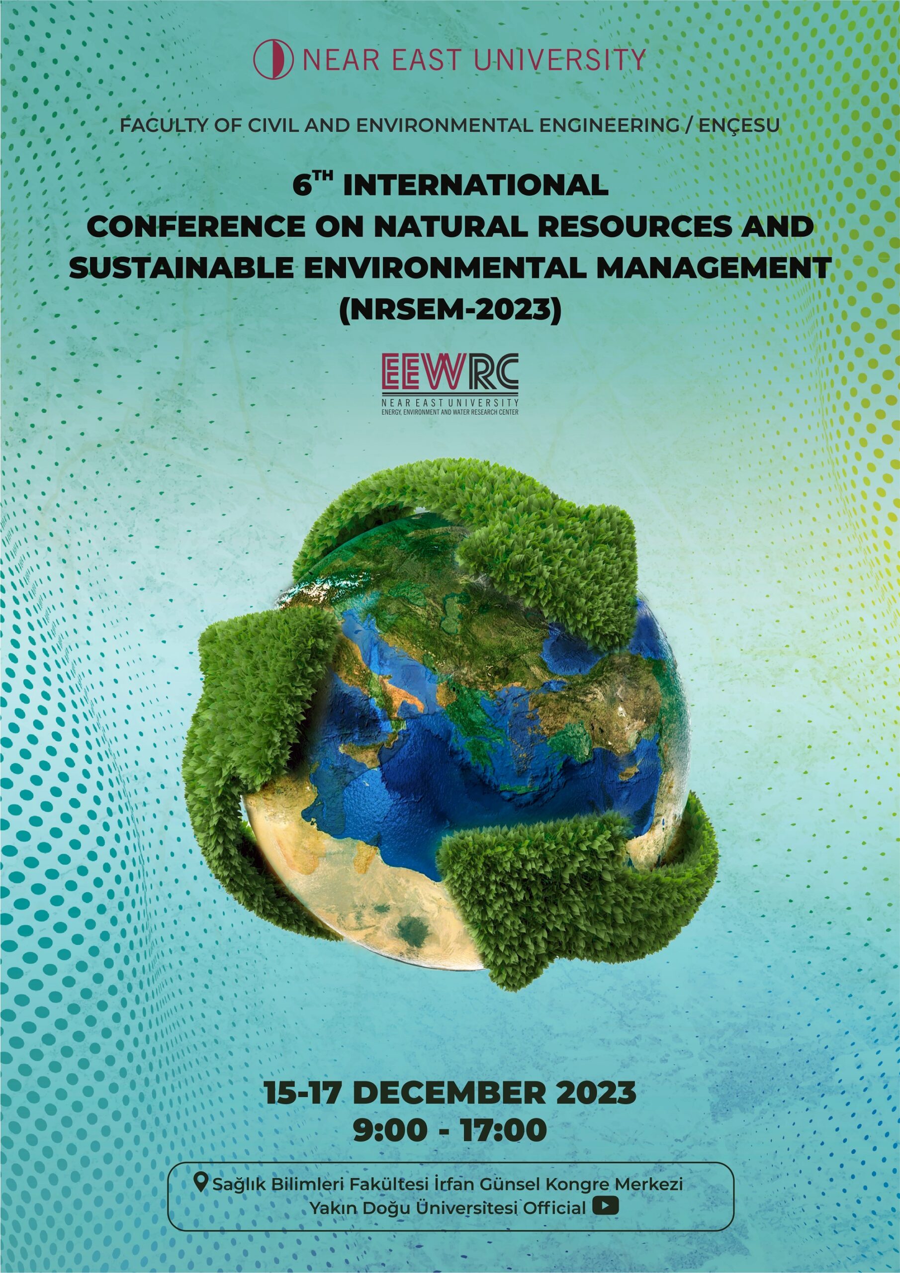 NRSEM-2023 is the sixth meeting in the series of the International Conference of International Conferences on European Environmental Policy and the case of Cyprus mines (EEPCCM-2001), Environmental Problems of the Mediterranean Region (EPMR-2002), Environment: Survival and sustainability (ESS-2007, ESS-2019) and fifth International Conference on Natural Resources and Sustainable Environmental Management (NRSEM-2021) building upon successful outcomes at the Near East University. The conference gives a gold standard interdisciplinary platform and ideal environment to develop new collaborations and opportunity for research and academic forums, researchers, practitioners, and educators, industries, communities, and the private sector from worldwide to discuss most recent innovations and explore various dimensions of inter linkages between the impacts of climate change on different resources. This five-day conference consisting of a scientific program, comprehensive talks, special sessions, oral and poster presentations of peer-reviewed contributed papers and exciting and innovative research products which can be exhibited for further development in the field of natural resources (Water and Energy) on Sustainable Environmental Management. Moreover, the NRSEM-2023 is therefore dedicated to (1) addressing, discussing, and delivering implementable solutions (2) to address the current challenges of bridging the gap between government policymakers and providers of science and solutions with innovative ideas and new visions to help resolve the challenges facing us in the area of natural resources (water, energy), and environment. Therefore, the conference aims to provide worldwide specialists, scholars, and researchers that are engaged in related fields a chance to exchange the latest research results and advances, study the latest technology, and establish an international friendship. This conference aims to provide intellectual guidance and scientific evidence on the challenges of global warming and climate change based on a humanistic and critical thinking approach, promoting research and education to build equality in the global community and more sustainable societies.